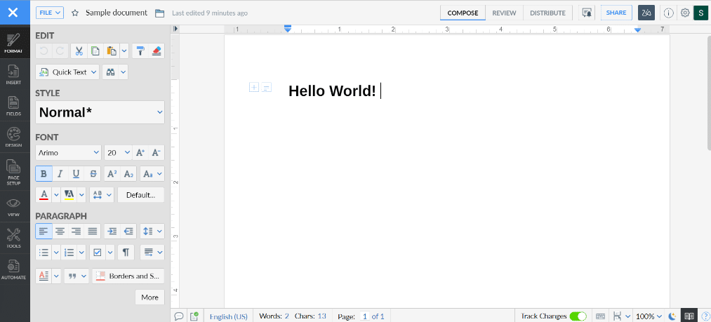 Zoho Writer est livré avec un ensemble complet d’outils de formatage et d’édition. De plus, il vous permet d’éditer des documents en ligne, de les partager avec d’autres personnes et de visualiser leurs modifications en temps réel. L’application vous permet également de suivre les modifications apportées par d’autres personnes à vos documents en ligne et leurs commentaires. Lorsque vous partagez un document, vous pouvez également verrouiller certaines parties du document pour éviter toute modification accidentelle.