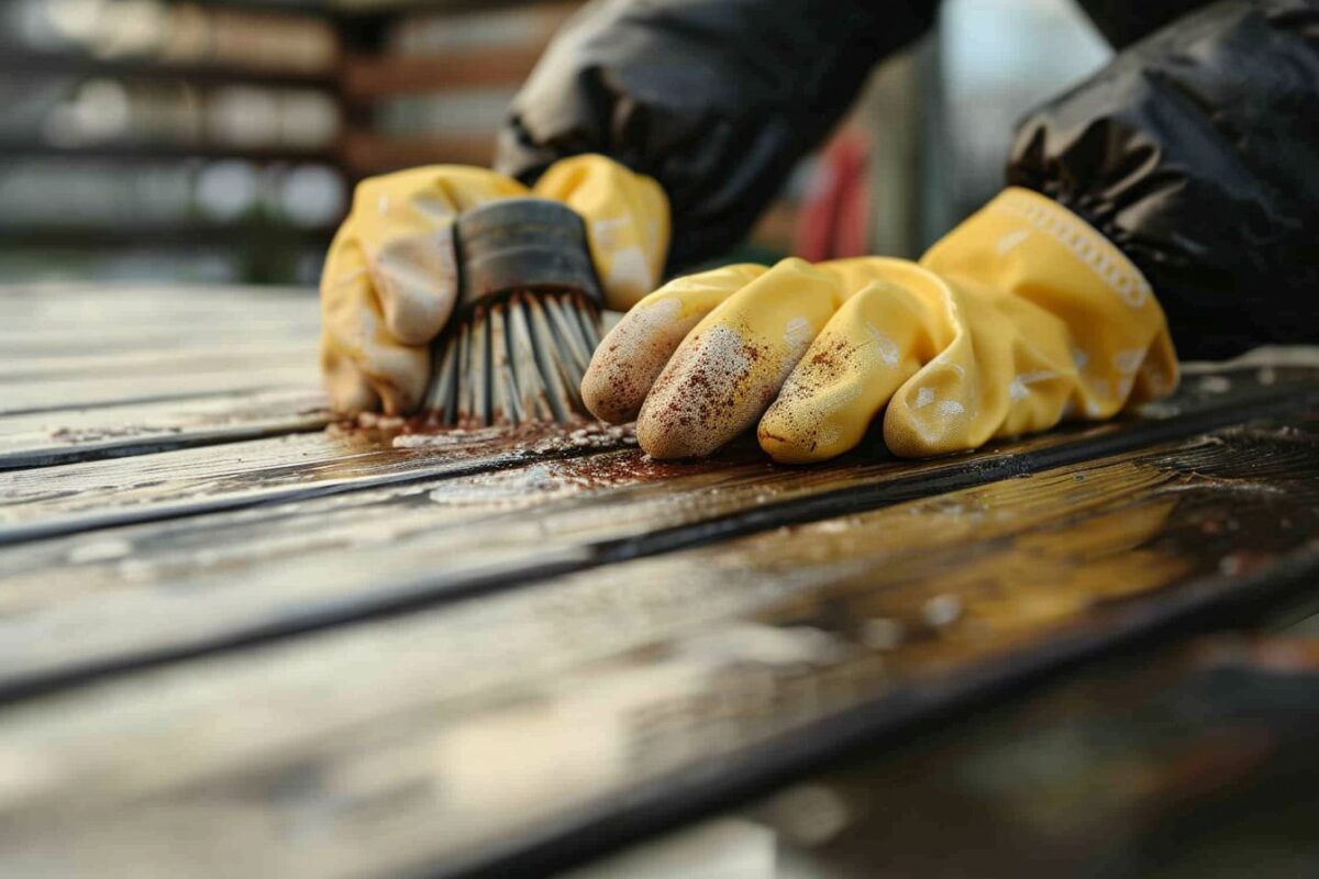 Pour commencer, il est souvent bénéfique d’employer des méthodes douces avant de recourir à des solutions plus agressives, vous pourrez pour en savoir plus sur ces méthodes ici. Un nettoyage régulier des surfaces peut empêcher le développement des taches de rouille. Utilisez un balai ou une brosse à poils souples pour retirer les feuilles mortes, la saleté et d’autres débris qui pourraient retenir l’humidité. Ceci est particulièrement important après les saisons pluvieuses ou dans les zones ombragées où l’humidité persiste.